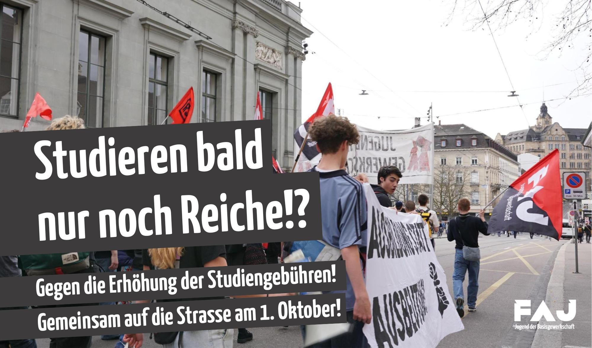 Gegen die Erhöhung der Studiengebühren! Gemeinsam auf die Strasse am 1. Oktober!
