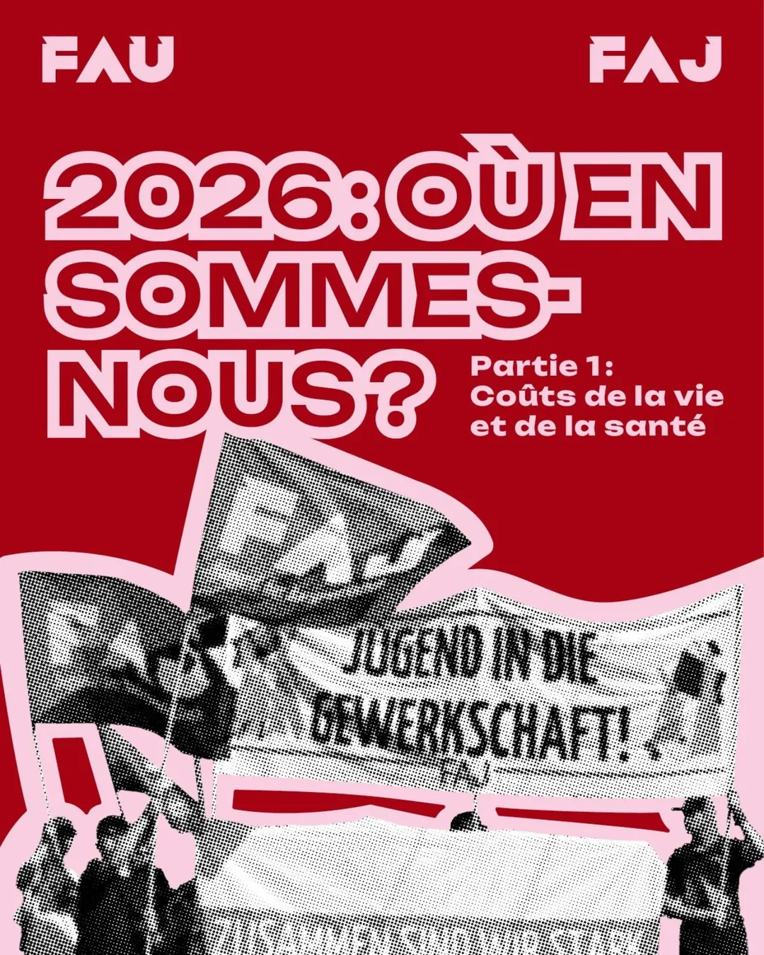 Cette année encore, la FAU et son organisation de jeunesse, la FAJ, seront présentes dans les rues le 1er mai. Tu trouveras ici les lieux de rendez-vous ainsi que le texte de mobilisation 2026