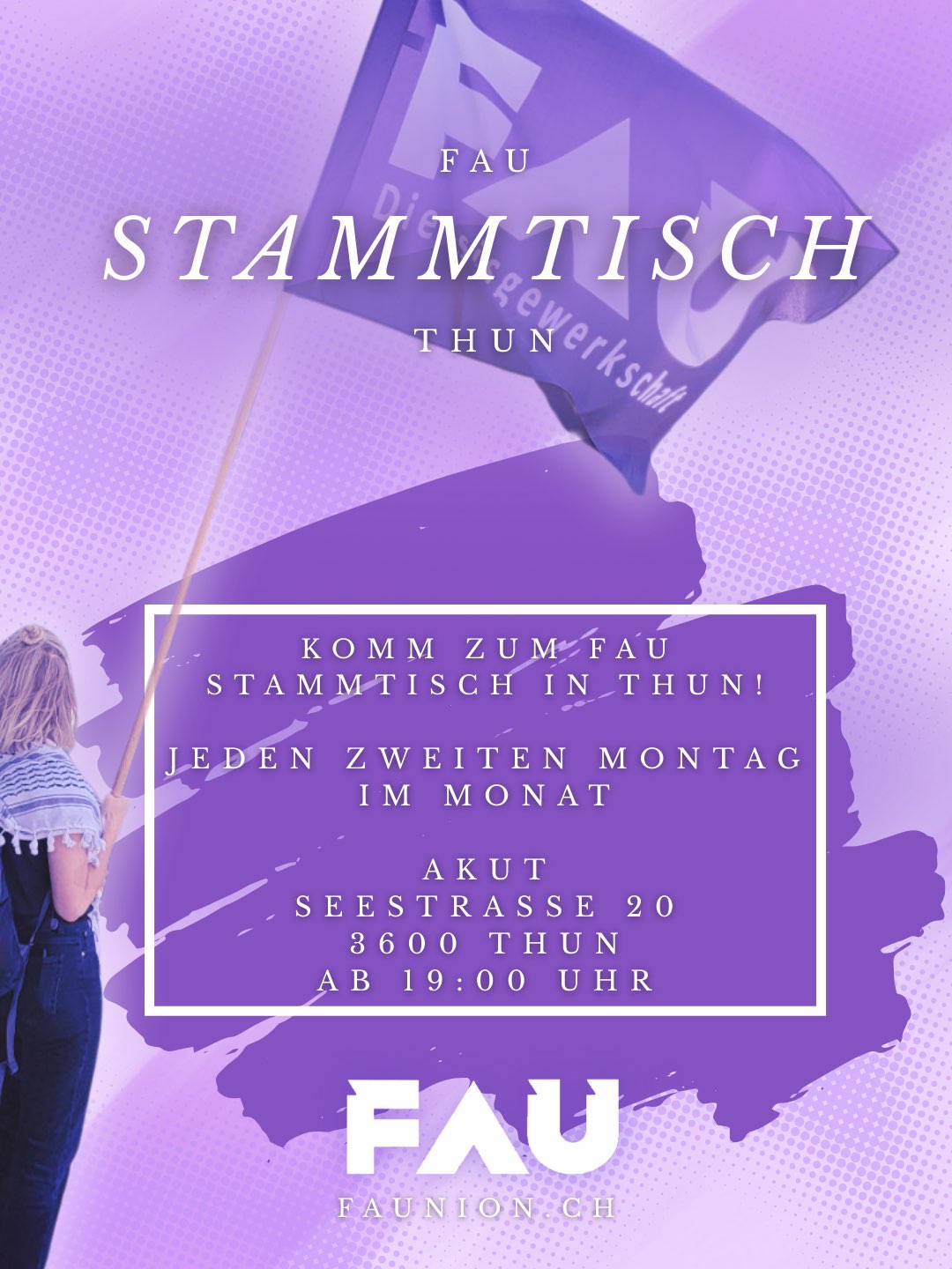 Jeden 2. Montag im Monat ist der Stammtisch der FAU im AKUT in Thun