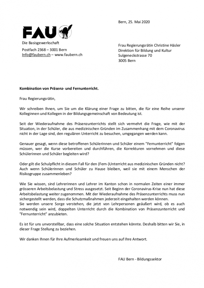 offener Brief: Kombination von Präsenz- und Fernunterricht